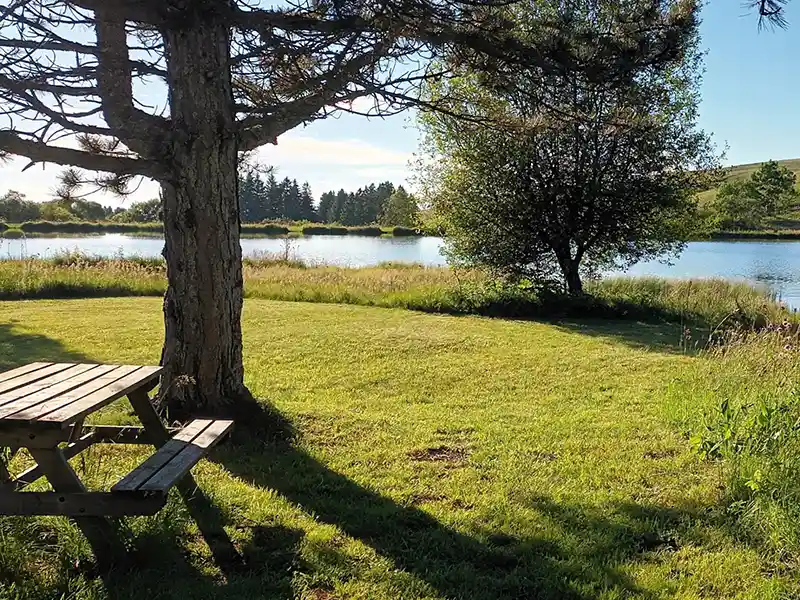 Ce réservoir de 3 hectares, profond de 7 mètres, est alimenté par des sources de première catégorie, garantissant une eau pure et fraîche.